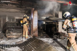 Oö: Berufsfeuerwehr und zwei freiw. Wehren bekämpfen Garagenbrand in Linz-Ebelsberg