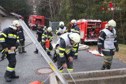 Brand im Außenbereich der Leonhard Kirche in Soboth. Die Brandbekämpfung hatte mittels TLF sowie mit einer 400 Meter langen Zubringleitung zum Stausee zu erfolgen. An dem Übungsszenario beteiligt waren die FF Hörmsdorf, die FF Wielfresen und der Löschzug Wiel.