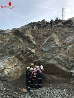Im Croy – Steinbruch wurde eine Person von herabfallenden Felsteilen verschüttet und verletzt. Nach dem befreien der verunfallten Person musste diese über das steile Gelände abgeseilt werden. Die Feuerwehren Pölfing – Brunn und St. Ulrich sowie das Rote Kreuz bewältigten dieses Szenario mit drei speziell ausgerüsteten Menschenretter mit Bravour.
