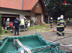 Brand eines Wirtschatfsgebäudes mit Hackschnitzelheizung und einer vermissten Person. Die Menschenrettung hatte aufgrund der starken Rauchentwicklung mittels schweren Atemschutz zu erfolgen. Eine weitere Übungsannahme war, dass sich ein Atemschutzgeräteträger beim Innenangriff Verletzungen zu zog und vom Atemschutz Rettungstrupp gerettet werden musste. Zusätzlich musste für die Brandbekämpfung ein behelfsmäßiges Becken errichtet und ein Pendelverkehr mit den verfügbaren Tanklöschfahrzeugen aufgebaut werden. Dieses Szenario galt es für die Feuerwehren Eibiswald, Soboth und Vordersdorf zu bewältigen.