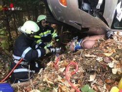 Verkehrsunfall mit einer eingeklemmten Person. Zusätzlich begann der Pkw zu brennen und es drohte der Übergriff der Flammen auf den Wald. Die verunfallte Person musste mittels hydraulischem Rettungsgerät befreit und versorgt werden. Währenddessen wurde ein 3-facher Brandschutz aufgebaut und mit der Brandbekämpfung begonnen. Dabei waren die Feuerwehren St. Oswald ob Eibiswald und Pitschgau sowie das Rote Kreuz im Einsatz.