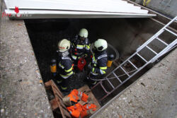 Eine Person ist in das Vergleichmäßigungsbecken bei der Kläranlage gestürzt und wurde dabei schwer verletzt. Zusätzlich brach im danebenliegenden Gebäude ein Brand aus. Die Menschenrettung hatte unter schweren Atemschutz zu erfolgen, da die Annahme bestand, dass sich in dem Becken Gase gebildet haben. Durch ein Gasmessgerät der Feuerwehr Wies konnte dies überprüft werden. Den Brand galt es mittels eines Tanklöschfahrzeuges zu bewältigen. An der Übung beteiligt waren die Feuerwehren Lateindorf und Wies.