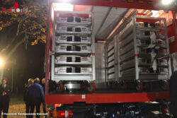 Ein 5. Rollcontainer „Beleuchtung“, eine Multifunktionsleiter und ein Faltbehälter mit 5000 Liter Fassungsvermögen werden ebenfalls mitgeführt. Neben der Normbeladung, ist auf Wunsch der Ortswehr Evendorf, ein Lichtmast mit LED-Beleuchtung, sowie 4 Atemschutzgeräte mit ins Fahrzeug integriert worden.