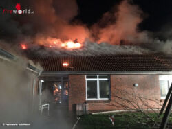 Schon bei Ankunft im Feuerwehrhaus berichteten Kameraden, dass hohe Flammen aus dem Dach der Schiffdorfer Kindertagesstätte "Regenbogen" schlagen. Bereits auf der Anfahrt wurden deshalb die Wehren aus Bramel, Sellstedt und Geestenseth, sowie die Drehleiter aus Langen (Stadt Geestland) nachalarmiert. Bei Eintreffen der ersten Kräfte stand ein Großteil des Kindergartens bereits im Vollbrand. Zügig wurden Wasserversorgungen von zwei Gebäudeseiten aus aufgebaut.