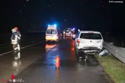 LAXENBURG (NÖ): Am 7. November 2017 wurden um 23:23 Uhr die Freiwilligen Feuerwehren Laxenburg und Wr. Neudorf zu einem Verkehrsunfall mit Menschenrettung auf die A2 Fahrtrichtung Wien alarmiert. Nach Angabe der Bezirksalarmzentrale befand sich noch eine regungslose Person im Fahrzeug.