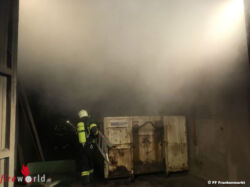 Nachdem dieser Einsatz kurz nach 4 Uhr beendet war, heulten um 04:48 Uhr erneut die Sirenen zu einem Brandalarm bei einem Sägewerk. Im Bereich des Aschecontainers des Heizwerks wurden eine starke Rauchentwicklung und Flammen festgestellt. Zwei Atemschutztrupps der beiden Feuerwehren löschten den Brand mittels Hochdruck-Rohr Nachdem es im Bereich der Ascheaustragung weiterhin qualmte, wurde dieser Bereich mit Mittelschaum abgedeckt. Brandursache war vermutlich ein Austritt von Hydrauliköl auf die Asche. Nach Reinigung der Geräte und Herstellung der Einsatzbereitschaft konnte der Einsatz um 06:30 Uhr beendet werden und die Mannschaft zur Arbeit fahren.