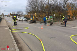 HOLLABRUNN (NÖ): Im Kreuzungsbereich Znaimerstrasse # Industriestrasse in Hollabrunn kam es am 11. November 2017 vermutlich auf Grund von Tiefbauarbeiten zur Beschädigung einer Gasleitung, die einen massiven Gasaustritt zur Folge hatte.