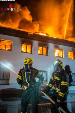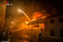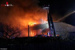 Erst nach neun Stunden um 3.30 Uhr konnte Brand aus gegeben werden. Die Nachlöscharbeiten dauern aber sicher noch bis in den Vormittag. Brandursache und Schadenshöhe stehen noch nicht fest.