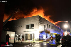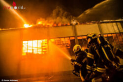 TRAUN (OÖ): In Traun ist Sonntagnachmittags, 12. November 2017, in einer Firmenhalle Feuer ausgebrochen. Die Flammen breiteten sich rasant aus, innerhalb kürzester Zeit brannte die 2.000 Quadratmeter große Halle lichterloh. Neun Feuerwehren waren im Einsatz.