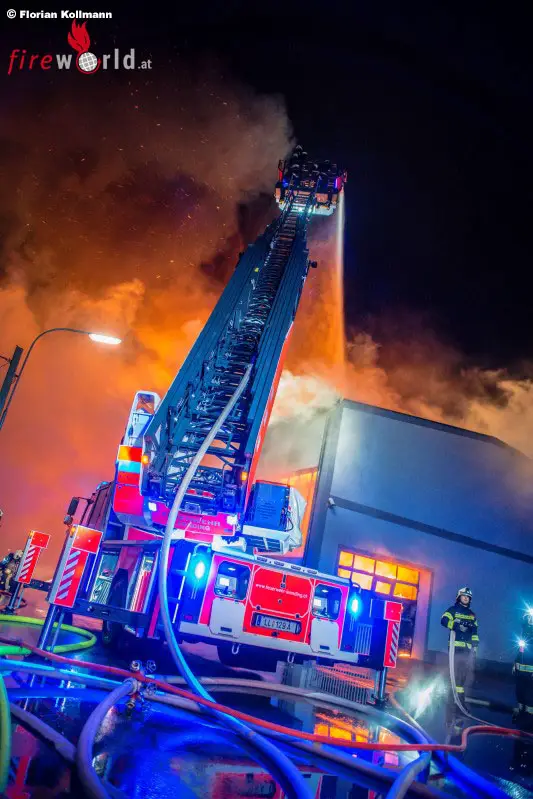 Oö: Großbrand in Traun → Neun Feuerwehren bekämpften schwieriges Feuer in Gewerbebetrieb