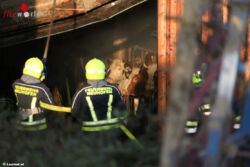 Nach dem Großbrand auf einem Bauernhof in Pucking (Bezirk Linz-Land) am Dienstag standen Mittwochfrüh, 15. November 2017, nach wie vor fünf Feuerwehren im Einsatz.