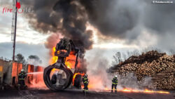Oö: Radlader im Wirtschaftspark Enns in Flammen