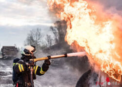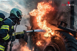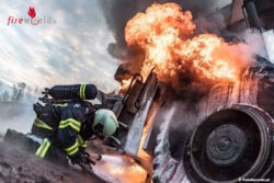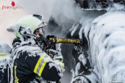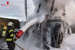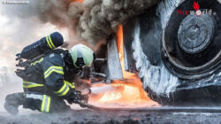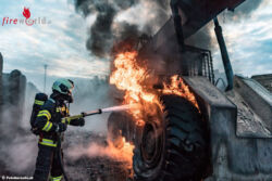 Die Brandbekämpfung gestaltete sich äußerst aufwendig, da sich heißes Hydrauliköl und auslaufender Kraftstoff immer wieder selbst entzündeten.