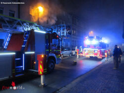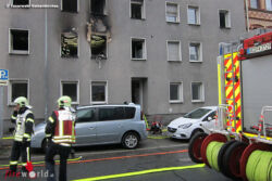 GELSENKIRCHEN (DEUTSCHLAND): „Feuer mit Menschenleben in Gefahr“ auf dieses Stichwort wurden um 06:37 Uhr des 15. November 2017 die Kräfte der Feuerwehr Gelsenkirchen in die Uechtingstraße im Stadtteil Schalke-Nord alarmiert. Beim Eintreffen der ersten Kräfte der Feuerwache Altstadt drangen bereits Flammen und schwarzer Rauch aus einer Wohnung im 1. OG eines Mehrfamilienhauses.