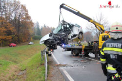 EIBISWALD (STMK): Am 17.11.2017 um 10:37 Uhr wurden die Feuerwehren Vordersdorf, Wies und Eibiswald zu einem Verkehrsunfall mit eingeklemmter Person im Bereich der Kowald-Höhe auf der B76 alarmiert. Am Einsatzort angekommen, wurde sofort bei beiden Fahrzeugen ein Brandschutz von den Feuerwehren aufgebaut.