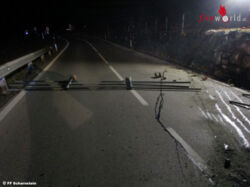Oö: Pkw sprang samt Absperrgeländer nach 50 Meter auf Abwegen wieder auf Almseelandesstraße zurück