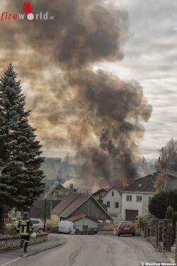 LICHTENAU (NÖ): Mehrere Anrufer meldeten am Samstag, den 18. November 2017 über den Feuerwehrnotruf 122 einen Großbrand im Ortsgebiet von Großreinprechts. Gegen 8.18 Uhr alarmierte der diensthabende Disponent laut Alarmstufe B3 (Scheunen- od. Schuppenbrand) die Einsatzkräfte.