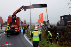 Aus unbekannter Ursache kam der Lenker des Fords von der Fahrbahn ab und seitlich im Graben zum Stillstand. Die Insassen des Fahrzeuges blieben unverletzt. Mit dem Ladekran des schweren Rüstfahrzeuges (SRF) konnte der Pkw wieder auf die Fahrbahn gehoben und im Anschluss mittels Hubbrille abtransportiert werden.