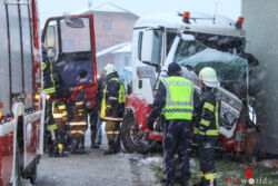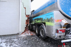 ESCHENAU IM HAUSRUCKKREIS (OL): Einen Schwerverletzten forderte Sonntagfrüh, 19. November 2017, ein Verkehrsunfall mit einem Milchtransporter in Eschenau im Hausruckkreis (Bezirk Grieskirchen). Der Lenker eines Milchtransporters verlor bei winterlichen Straßenverhältnissen aus bisher unbekannter Ursache die Kontrolle über seinen Lkw und krachte gegen das Eck eines Garagengebäudes.