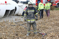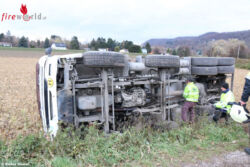 Der Lenker wurde verletzt und mit vom Roten Kreuz Tulln in das Spital gebracht. Die Feuerwehr Altenberg sicherte die Unfallstelle ab und brachte zunächst Ölbindemittel auf. Weiters wurden die Feuerwehren St. Andrä-Wördern und Klosterneuburg alarmiert. Zur Bergung des Schwerfahrzeuges wurde der Kran der FF St. Pölten Stadt angefordert.