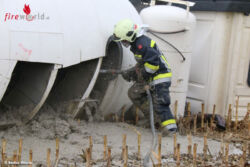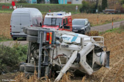 ST. ANDRÄ-WÖRDERN (NÖ): Ein Betonmischwagen fuhr am 20. November 2017 in Altenberg (Gem. St. Andrä-Wördern) über einen Bahnübergang. Dabei krachte er in den geschlossenen Schranken, stürzte danach über eine Böschung und kam seitlich zu liegen.