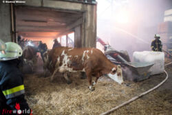Beim Eintreffen der ersten Feuerwehrkräfte wurde alles daran gesetzt, die rund 60 Rinder, die sich noch im Stall unter der in Vollbrand stehenden Dachkonstruktion befanden, zu retten. Um die Tiere so rasch als möglich in Sicherheit zu bringen, wurden die anrückenden Feuerwehren bereits während der Anfahrt via Funk über einen dringenden Atemschutzeinsatz informiert.