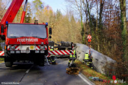 Stmk: Sattelschlepper auf B66 umgestürzt → Lkw-Lenker von Feuerwehr aus Führerhaus befreit