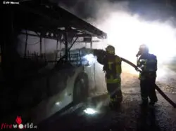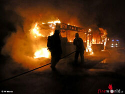 WERNE (DEUTSCHLAND): Der Löschzug 1 und die Löschgruppe 2 aus Langern der Freiwilligen Feuerwehr Werne wurde um 06:25 Uhr des 21. November 2017 per Meldeempfänger mit dem Stichwort „Feuer_2 – Brand eines Busses, keine Personen im Bus“ zur Lünener Straße alarmiert. Als die ersten Einsatzkräfte die Einsatzstelle erreichte, brannte der Bus bereits in voller Ausdehnung.