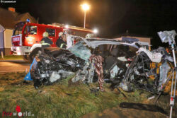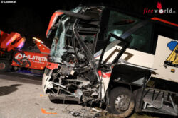"Wir sind um 21.51 Uhr zu einem Verkehrsunfall mit eingeklemmter Person hier nach Schlierbach alarmiert worden. Vorgefunden haben wir einen voll besetzten Reisebus. Das zweite beteiligte Fahrzeug war ein Pkw, wo noch zwei Personen eingeklemmt waren. Die Feuerwehr Inzersdorf im Kremstal war bereits vor Ort, die zwei verletzten Personen sind bereits vom Notarzt versorgt worden und wurden dann aus dem Autowrack befreit. Zwei Insassen des Reisebusses sind mit der Rettung ins Krankenhaus gebracht worden. 27 weitere Insassen vom Reisebus sind gemeinsam mit der Feuerwehr Kirchdorf an der Krems und Schlierbach ins Feuerwehrhaus nach Kirchdorf an der Krems gebracht worden," schildert Andreas Dutzler, Einsatzleiter der Feuerwehr Schlierbach.