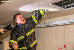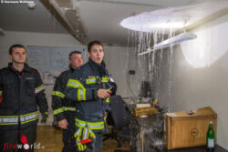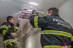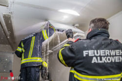 Per 05.07 Uhr wurden die Einsatzkräfte der Freiw. Feuerwehr Alkoven am 24. November 2017 zu einem Wasserschaden in einem Objekt in der Ortschaft Hartheim alarmiert. Dort wurde man in einem EDV-Raum auf einen starken Wasseraustritt aus dem Bereich einer abgehängten Rigips-Decke aufmerksam. „Wir mussten über zwei Deckentürchen erst einmal eruieren, woher das Wasser kam“, schildert Einsatzleiter und Feuerwehrkommandant Markus Unter.