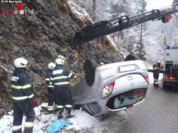 BAD ISCHL (OÖ): Um kurz vor 08:00 Uhr des 27. November 2017 wurde die Freiwillige Feuerwehr Mitterweißenbach zu einer Pkw-Bergung im Weißenbachtal alarmiert.