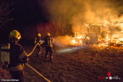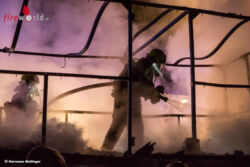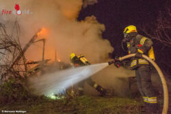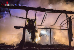 Drei Atemschutztrupps führten im Anschluss die Nachlösch- und Aufräumarbeiten im Bereich der Hütte durch. Dabei wurden auch immer wieder noch Glutnester ausgehoben und abgelöscht. Nach etwa eineinhalb Stunden rückten beide Feuerwehren wieder in ihre Häuser sein, um umfassende Reinigungsarbeiten durchzuführen und die Fahrzeuge wieder aufzupacken. Nach Ende dieser Tätigkeiten erfolgte eine Nachkontrolle der Brandstelle per Wärmebildkamera. Einsatzende war schlussendlich um 22.44 Uhr.