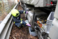 ALLHAMING (OÖ): Ein LKW-Unfall sorgte Montagvormittag, 27. November 2017, auf der Westautobahn bei Allhaming (Bezirk Linz-Land) für erhebliche Behinderungen sowie den Einsatz der Feuerwehr.