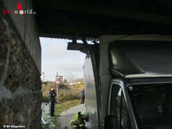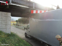 KLAGENFURT (KTN): Der Lenker eines Kleinlasters hat am Dienstagnachmittag, 28. November 2017, in Klagenfurt die Höhe seines Fahrzeuges unterschätzt. Er blieb mit seinem Lkw unter einer Eisenbahnbrücke stecken. Die Feuerwehr musste den Lastwagen bergen.