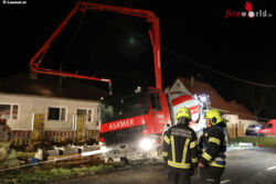 Ein Mischwagen war im Bereich einer Baustelle am Straßenrand im Bankett eingesunken und kam nicht mehr heraus. Der Lenker des Schwerfahrzeuges reagierte vorbildlich, er verständigte die Feuerwehr, welche den Betonmischer vorerst sicherte. In weiterer Folge wurde mit dem Betonieren begonnen um den Lkw zu entladen. Anschließend konnte die Feuerwehr das Fahrzeug zurück auf die Straße ziehen. Nach wenigen Minuten stand der Betonmischer wieder auf festem Untergrund. Verletzt wurde niemand.