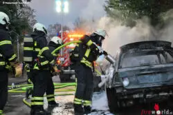 Die Einsatzkräfte setzten zwei C-Rohre unter Atemschutz zur Brandbekämpfung ein und konnten den Brand zügig ablöschen. Im weiteren Verlauf kam dann noch Schaummittel zum Einsatz. Neben den Einsatzkräften der Berufsfeuerwehr war auch die Löschgruppe Oestrich zur Unterstützung alarmiert worden. An dem Pkw entstand Totalschaden, verletzt wurde niemand.
