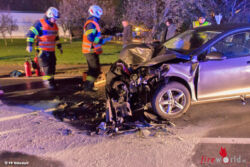 OHLSDORF (OÖ): Zu Aufräumarbeiten nach einem Unfall wurde die Feuerwehr Ohlsdorf am Mittwoch, 19. November 2017, um 17:31 Uhr nach Ruhsam alarmiert. Aus unbekannter Ursache stieß auf der L1303 im Bereich einer Kreuzung ein Doppeldeckerbus und ein Pkw zusammen.