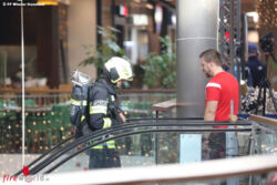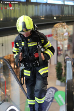 Immer wieder bestaunen auch die Besucher vom FISCHAPARK die beachtliche Leistung des Feuerwehrmannes. Einige haben auch schon die Möglichkeit genutzt, den Extremsportler auf der Rolltreppe daneben, einige Meter zu begleiten. In regelmäßigen Abständen begleiten auch Mitglieder des Betreuerteams.