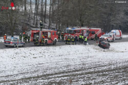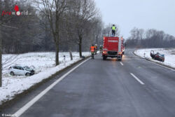 Aus bisher unbekannter Ursache kollidierten zwei Autos frontal. Feuerwehr, Rettungsdienst, Notarzt, Notarzthubschrauber und Polizei wurden zu dem Unfall alarmiert. Beim Eintreffen am Einsatzort bot sich den Einsatzkräften ein großes Trümmerfeld aus Fahrzeugteilen und zwei schwerbeschädigte Fahrzeuge. Mehrere Personen waren in den Fahrzeugen eingeklemmt. Ein Pkw-Lenker erlitt bei dem Unfall tödliche Verletzungen, zwei weitere Personen wurden schwer verletzt.