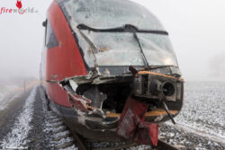 Laut ersten Informationen dürfte es keine Verletzten geben. Der Unfall ereignete sich in der Ortschaft Tobra in der Stadtgemeinde Perg. Die rund 20 Zugpassagiere dürften unverletzt geblieben sein, der Lokführer wird medizinisch versorgt. Der Triebwagen ist nicht mehr fahrtauglich und muss daher abgeschleppt werden. Die Zugstrecke bleibt vorerst gesperrt, ein Schienenersatzverkehr wurde eingerichtet. Die Feuerwehr ist mit den Aufräumarbeiten beschäftigt.