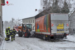 ST. ROMAN (OÖ): Zu Aufräumarbeiten nach einem Verkehrsunfall wurde die FF St. Roman am 04.12.2017 per Sirene, Pager und Handy alarmiert. Aufgrund der winterlichen Fahrbahnverhältnisse kollidierte mitten im Ortsgebiert von St. Roman ein Kommunaltraktor mit einem entgegenkommenden Lkw.