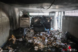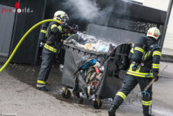 Erst vor knapp einem Monat war in dem Müllraum ein Abfallcontainer in Brand gesteckt worden. Sonntagvormittag brannte es erneut. Eine zufällig im Nahbereich anwesende Polizeistreife bemerkte Rauch aus dem Müllraum und alarmierte die Feuerwehr. Löschversuche schlugen aufgrund der Brandausbreitung auf mehrere Müllcontainer fehl. Die Feuerwehr konnte den Brand rasch eindämmen und ablöschen. Leitungen und Rohre im Müllraum wurden durch das Feuer schwer beschädigt. Verletzt wurde niemand. Die Polizei ermittelt.
