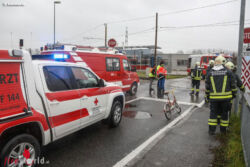 Ein Pkw-Lenker hatte offenbar den herrannahenden Regionalzug der Linzer Lokalbahn übersehen. Als er die Eisenbahnkreuzung überqueren wollte, wurde der Pkw vom Zug erfasst und mehrere Meter weit mitgeschleift. Der Beifahrer im Auto erlitt bei der Kollision leichte Verletzungen. Er wurde vom Rettungsdienst und der Notärztin erstversorgt und anschließend ins Krankenhaus eingeliefert.