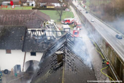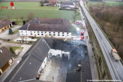 In weitere Folge wurde ein Atemschutztrupp zur Brandbekämpfung bzw. Schützen des Wohntraktes im Innenhof eingesetzt. Durch den raschen Einsatz von insgesamt 12 Feuerwehren konnte ein Übergreifen der Flammen auf den Wohntrakt verhindert und der Brandherd auf den Dachstuhl im vorderen Bereich begrenzt werden. Gegen 13 Uhr konnte wir einrücken und nach umfangreichen Reinigungsarbeiten die Einsatzbereitschaft wiederherstellen. Die Feuerwehren Mauthausen und Haid waren noch einige Stunden mit den Nachlöscharbeiten beschäftigt.