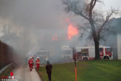 MAUTHAUSEN (OÖ): Beim Brand eines Bauernhofes in Haid, Gemeinde Mauthausen, am 6. Dezember 2017, standen – bzw. stehen per 14.30 Uhr teilweise noch – 12 Feuerwehren im Einsatz.