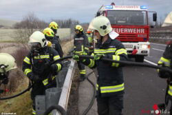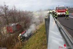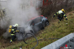 Das Auto fuhr etwa 200 Meter auf der Böschung hinter der Leitschiene entlang, welche immer steiler wurde. Der junge Fahrzeuglenker und seine Beifahrerin konnten das Auto rechtzeitig verlassen, bevor Flammen aus dem Motorraum schlugen. Die zwei alarmierten Feuerwehr brachten den Brand rasch unter Kontrolle. Die Insassen des Pkw blieben unverletzt.