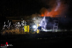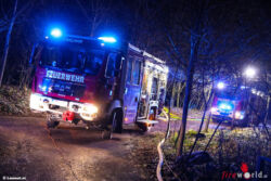 WALLERN (OÖ): Vier Feuerwehren standen Samstagabend, 9. Dezember 2017, bei einem Brand einer Saunahütte in Wallern an der Trattnach (Bezirk Grieskirchen) im Einsatz.