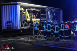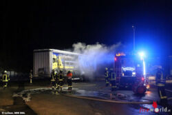Während der Verlade-Arbeiten stellten die Fahrer eine Rauchentwicklung aus dem Motorraum des Fahrzeugs fest und setzten bei der Leitstelle Traunstein einen Notruf ab. Die Einsatzkräfte erkundeten unter Atemschutz die Lage und stellten einen Schwelbrand unterhalb des Führerhauses an der Abdeckung des Motors fest. Da die Stelle nur schwer erreichbar war, mussten sie den Laster auf dem Hänger erst drei Meter nach hinten bewegen, um das Führerhaus nach vor klappen. Die Feuerwehrleute konnten dann die Verkleidung entfernen und den Brandherd endgültig mit einem C-Rohr ablöschen.