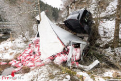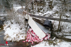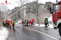 Oö: Sattelschlepper rund 10 m von Naarntal Bundesstraße gestürzt