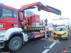 Gemeinsam mit der Autobahnpolizei und der ASFINAG-Autobahnmeisterei sicherte die Feuerwehr die Unfallstelle ab, auch das Rote Kreuz war im Einsatz. Mittels Kran des Wechselladefahrzeuges führte die Feuerwehr die Bergung des schwer beschädigten PKW durch und stellte diesen gesichert ab, auch ausgetretene Betriebsmittel mussten gebunden werden.